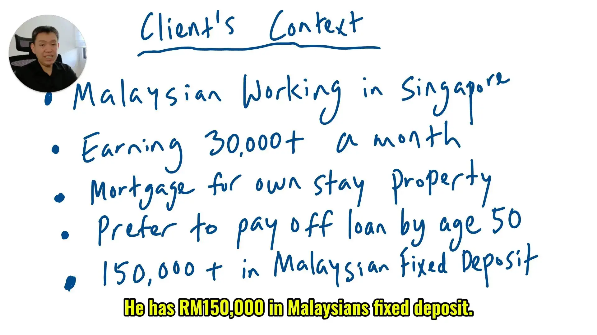 Most clients have emergency funds or prestige cash in fixed deposits. Instead of using this cash to pay down loan interest, what you can do is invest it to earn a conservative return rather than putting it in a fixed deposit. For instance, with an investment of 150,000 ringgit at 6% per annum for 15 years, you will generally add a significant amount of money for mortgage payment when you are 50 years old or you will even push your retirement fund to the next level.